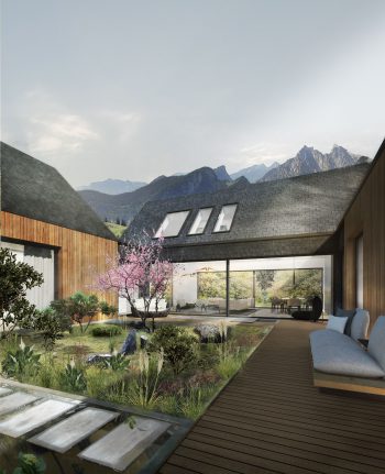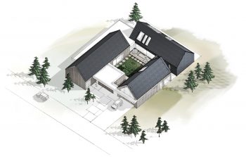 Powstał dom o układzie atrialnym, zaprojektowany wokół centralnie zlokalizowanego ogrodu, ale otwarty na otaczającą przyrodę. Bryła budynku stała się barierą pomiędzy dziką a uporządkowaną wersją natury.