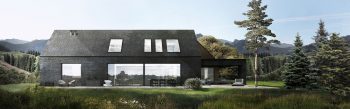 Z uwagi na wszechobecność przyrody, chcieliśmy aby materiał zewnętrzny budynku był także naturalny. Zdecydowaliśmy się na drewno i grafitowy łupek. Drewno, kamień, zieleń, woda i ogień harmonijnie przeplatają się w tym projekcie.