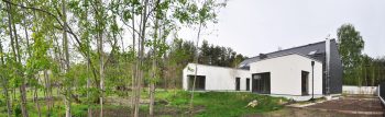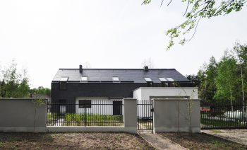 Dom kryty łupkiem jest zlokalizowany w Warszawie w otoczeniu lasu i gęstej zieleni, w sąsiedztwie kilku domów. Inwestorzy pragnęli nowoczesnej architektury, która jednocześnie wpisze się w naturalny charakter otoczenia i zapewni im prywatność.